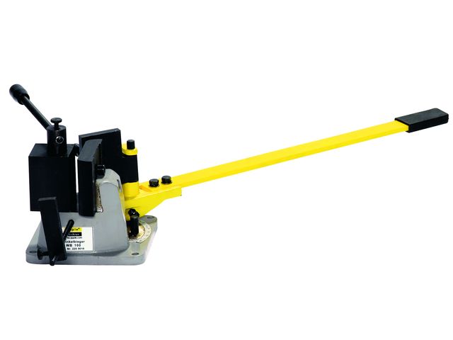 Featuring a rugged design for optimum benchtop strength, the WB 100 corner folding machine is suitable for hot and cold bending, flat, round and square irons.