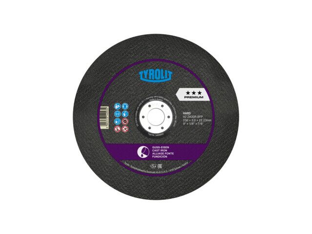Tyrolit cut-off wheels for cast iron are the best on the market. They combine a new bonding system with high-quality zirconium aluminium oxide and are available in various degrees of hardness. In addition to resin-bonded cut-off wheels, there are diamond products for grey and ductile cast iron and silicon carbide wheels for heavily ground parts. The tools are suitable for use on angle grinders and, in some cases, stationary cutting machines.