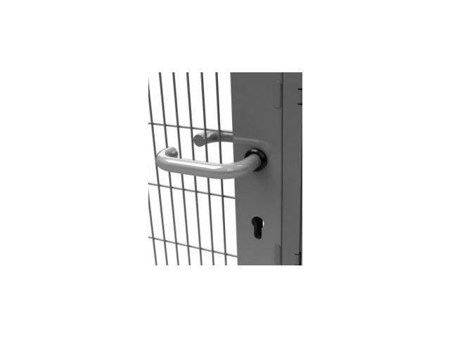 The cylinder lock is easily fitted to our mesh, pc or steel  sheet doors and includes a lock case from SAG. The  locking tube as well as the striking plate, are reinforced  with a welded steel cover to reduce the risk for  manipulation. Extra hooks makes it impossible to open  the door by pulling it sidewise.