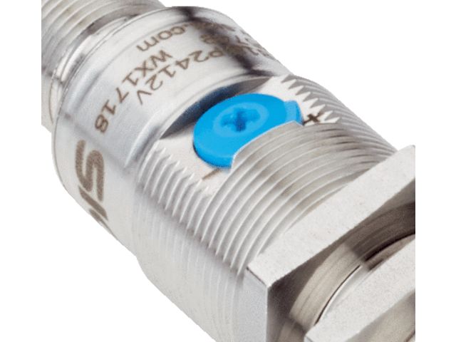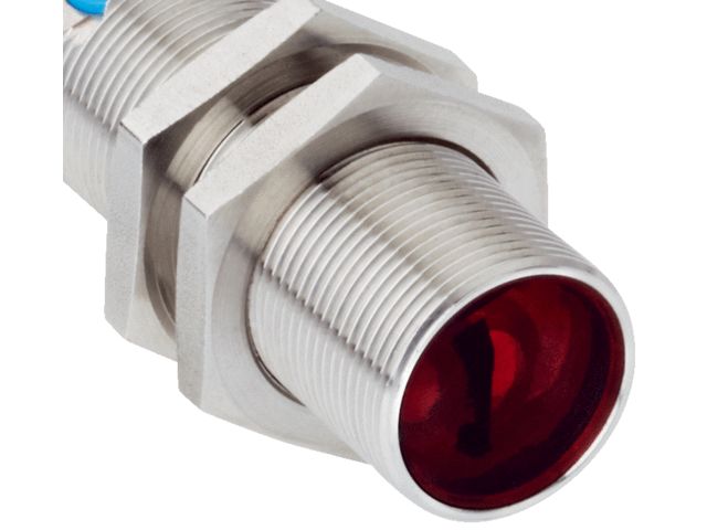 The cylindrical photoelectric sensors of the GR18 Inox product family are characterized by a corrosion-resistant V4A (316L) stainless-steel housing.
