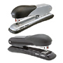 Desktop stapler 100% steel construction, with a base rubber to ensure en excellent stability - Available in black / red / blue or chrom color - Store of 105 staples - Capacity of fastening to 20 sheets - Depth of fastening: 50mm - Use 26/6 or 24/6 staples.