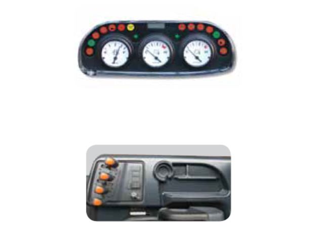 The integrated instrument panel provides critical information instantly. Fuel, oil pressure, temperature and hour usage are clearly indicated, whilst additional status information on the mast interlock feature, transmission status, seat belt, and brake oil level keeps the operator fully aware of all vehicle performance systems.
