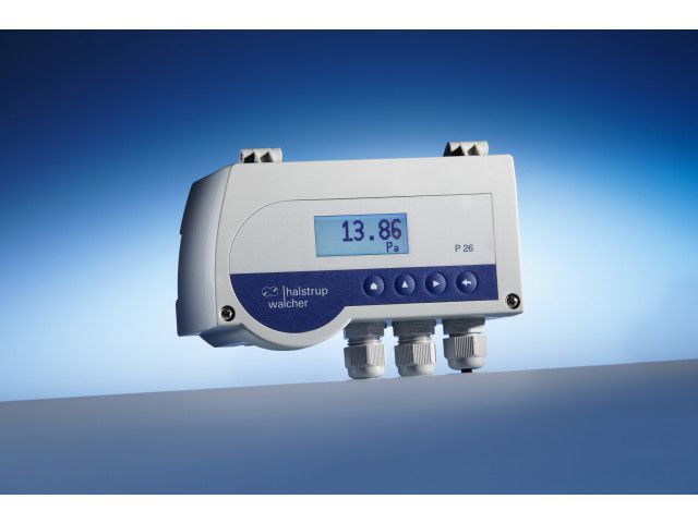 The P 26 differential pressure transmitter is designed for pressure monitoring applications in cleanrooms, laboratories, pharmaceutical plants and operating theatres as well as for special uses in machine and plant construction. As well as measuring the differential pressure, the instrument also records positive and negative overpressures as well as flow rates or volumetric flows.
