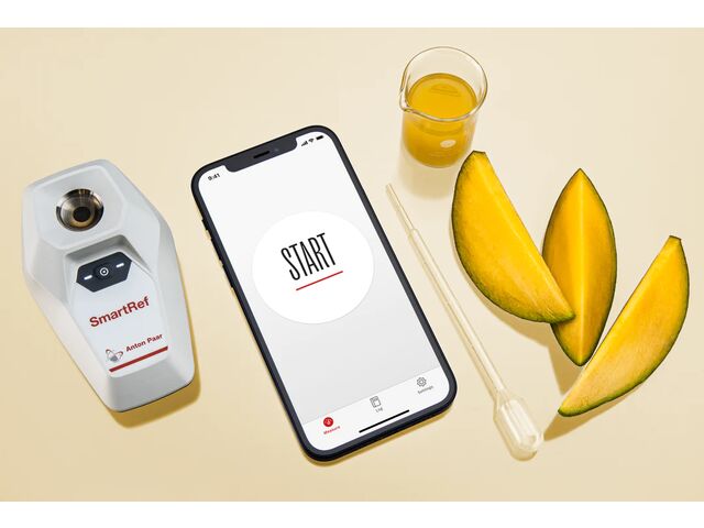 “ Smart technology for consistent results - The SmartRef portable refractometer is used in combination with a free mobile app for Android and iOS via Bluetooth Low Energy and enables intelligent handling of the measurement results. - The app permits easy storage, visualization, management, and sharing of measurement data. - SmartGuide+ detects and helps eliminate measurement problems through high ambient light detection, continuous checking of prism and sample condition, and more - In addition to the quick measurement mode, measurements in continuous mode allow a more detailed understanding of the samples’ properties. - Over-the-air updates keep your digital refractometer up-to-date with the latest features. SmartRef measurement details - The SmartRef refractometer measures the refractive index of fluids. This allows retrieval of relevant sample properties in a wide variety of applications. - Fast temperature stabilization and automatic temperature compensation for measurement results make additional calculations and correction tables obsolete. - The unit has an IP66 rating and an easy-to-clean stainless steel sample well. - SmartRef supports a one-point zero adjustment with distilled water and requires only a few drops of sample (0.4 mL). - SmartRef displays results in under two seconds and has a measurement range of 0 °Brix to 85 °Brix with an accuracy of 0.2 °Brix. High variety of measurement applications - Brix refractometer: For honey, wine, juice, sauces, jams, fruits, vegetables, and maple syrup. The SmartRef measures the sugar content in °Babo, °Baumé, °Brix, °KMW, and °Oechsle. - Salinity refractometer: SmartRef determines the salt content in your saltwater aquarium and pool in salinity specific gravity (SG 20/20), practical salinity units (PSU), and salinity in parts per thousand (ppt). - Beer refractometer: SmartRef shows the extract content of wort in °Plato. - As a smart device, SmartRef offers a constant expansion of measurement units. All available scales are provided within the app. ”