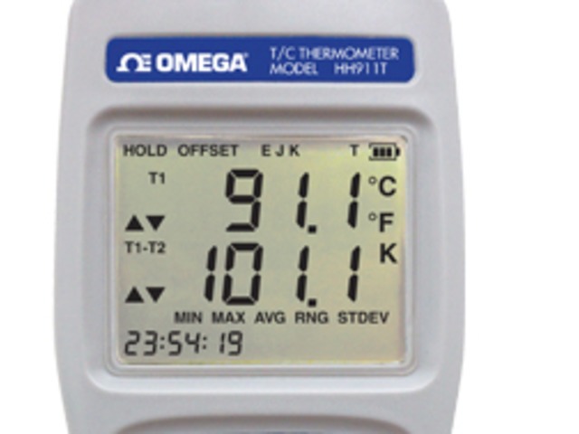 OMEGA’s new precision digital thermometers are compatible with Type K, J, T or E thermocouple probes to provide a wide range of temperature measurements from -250 to 1372°C (-418 to 2502°F).