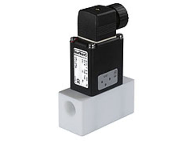 2/2 or 3/2 way direct acting rocker solenoid valve with isolating diaphragm; DN 2 or 3mm; vacuum up to 10bar; 22mm width.