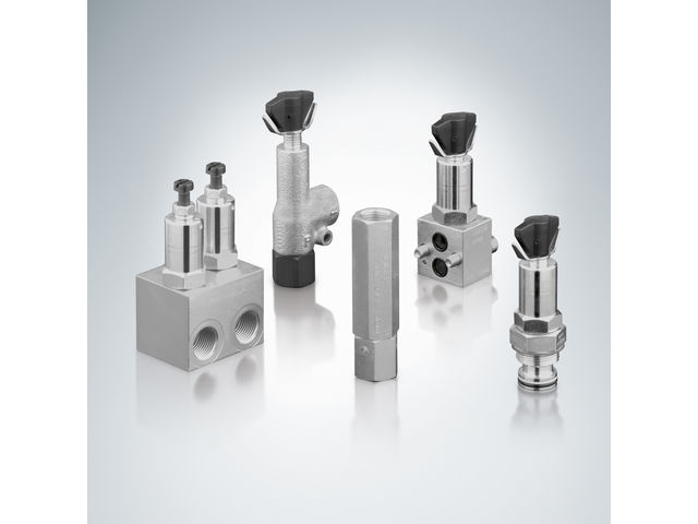 Directly controlled valves feature a dampening device to ensure quiet operation, but also available without it if necessary for an application. There is also a version of the pressure limiting valve, which features a type approval (TÜV), necessary when they are used as safety valves for accumulators.
