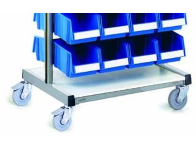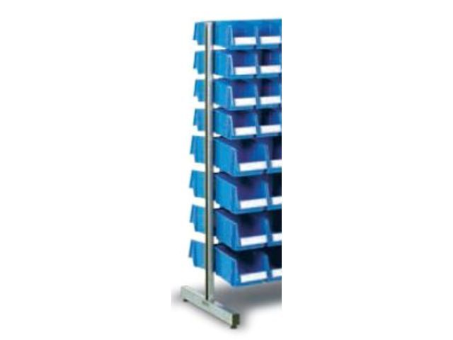 Construction similar to a single stand. Stacking bins are hung on both sides of the bin rail. The load capacity of the rail is 15 kg per side; 30 kg in total. The stand load capacity is 240 kg. Stacking bins must be ordered separately.
