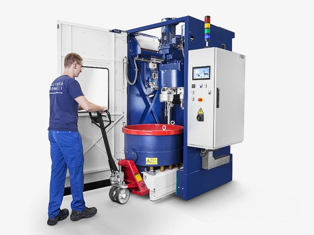 Compared to standard mass finishing systems the newly developed M-TMD machine range finish high-value components 10 to 20 times more efficiently! By mounting the work pieces individually to workstations, which are part of a rotating carousel, you can process up to 18 work pieces in one single batch without risking part-on-part impingement.