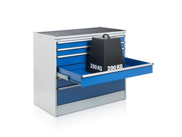 A versatile, lockable, light grey (RAL 7035) drawer unit, with wheels or a plinth, or the standard model can be mounted under a worktop. The frame comes in two different heights, and there are many drawer combinations to choose from. Drawer units equipped with wheels serve as tool trolleys and additional work surfaces. A cabinet version with an adjustable shelf is also available. Most of the models come with ESD protection, which makes them suitable for use in EPAs.