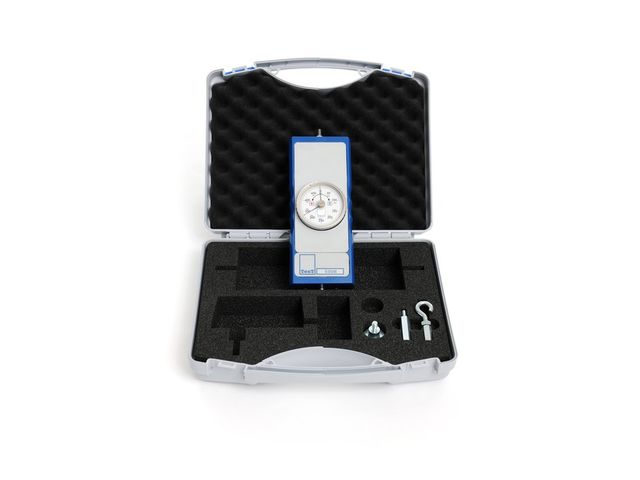 The portable measuring instruments modell 1191 have tangentially arranged high-precise measuring springs that are connected to the force transmission. The path is being measured via a precision vernier clock and is force-proportional. The display is directly calibrated in the force-unit Newton (N). The calibration is carried out with reference measuring devices and / or weights that are traceable to governmental normal.