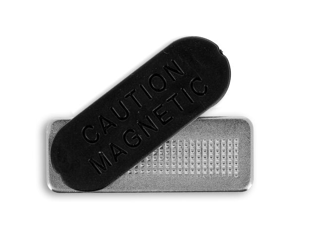 This magnetic bar is designed to attach your badge discreetly without a catch or pin, to avoid damage to clothes. It has one magnetic part to put under the garment and another, adhesive, to stick to the back of the badge. Only the badge is visible.