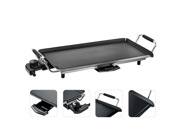 Retrouvez les avantages d’une cuisson saine et sans graisse grâce à notre plancha grill électrique Teppanyaki. Avec sa surface de cuisson de 43 x 23 cm, la plancha vous offre un espace de cuisson suffisant pour 3 à 5 personnes.