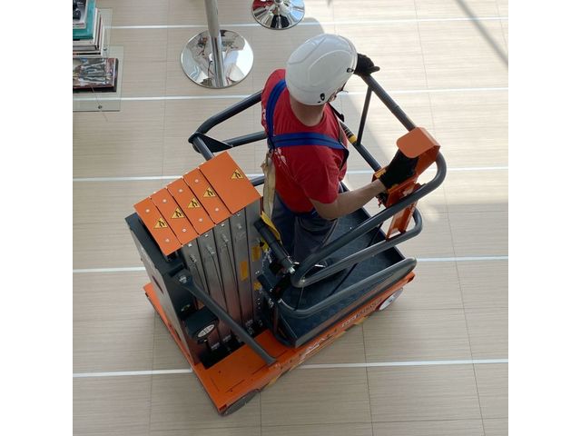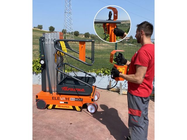 Elevah 65 Move Light is the self-propelled platform with electric elevation that allows to reach up to 6.3 m working height, extremely compact and light in weight (only 538 kg). Ideal for the maintenance of theatres, museums, sports halls, conferences halls and all places with delicate or low load-bearing floors.
