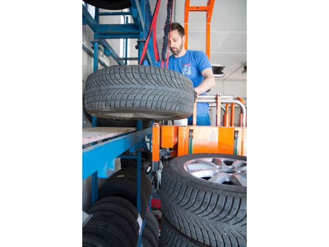 “ A special stock picker with a double tool to lift a tire set from the ground and to store or pick it up. ”