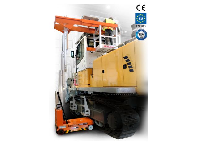 “ Self-propelled platform with electric elevation and 115 cm manually extendable basket for maintenance and repair work. ”