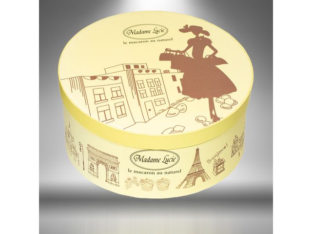 Round embossed cardboard box for packaging processed cheese.