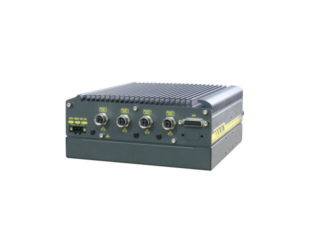 Integrating an Intel Atom® quad-core x6425E, -40°C to 70°C fanless operations, M12 PoE+ connectivity, up to 5TB data storage capacity, 2500 watt second SuperCAP UPS, 43V to 160V wide-range DC input, and EN50155 and EN45545 compliance, the Nuvo-2615RL series is the ideal rugged transportation computer for vision-based rolling stock applications.