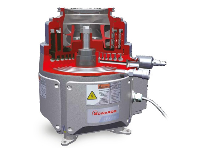 The EPX pump system operates at pressures between atmospheric and ultimate vacuum, with no lubricating or sealing fluid in the pumping chamber. This ensures a clean pumping system without back-migration of oil or fluid into the system being evacuated.