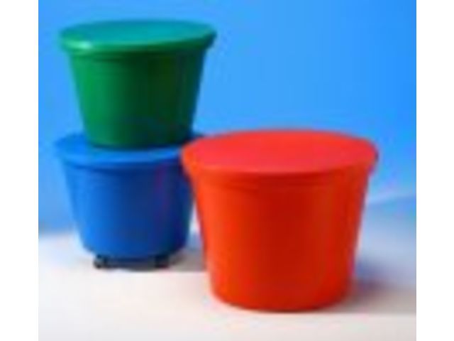 A round boxes which will nest when empty to reduce storage and transport space. These boxes come with a lid and are mainly used to store powders and small parts. Also available in a black dissipative version.