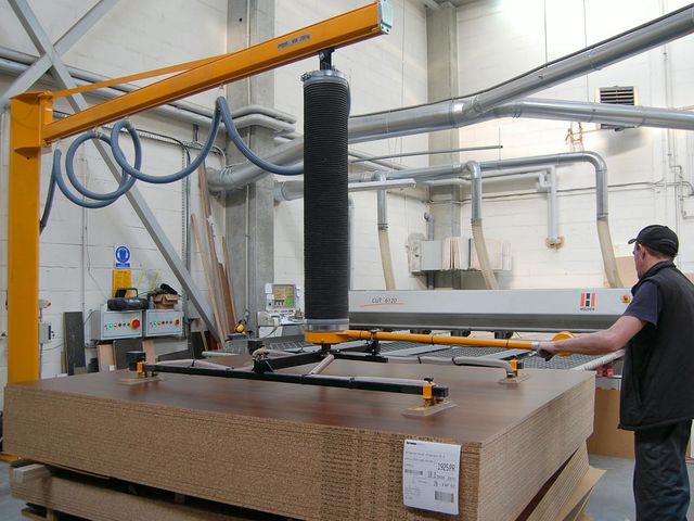 Specializing in vacuum handling solutions since 1991, MANUPAC offers a high-performance system dedicated to the handling of horizontal panels. Designed for demanding industrial environments, this solution enables easy and safe manipulation of panels, doors, plasterboards, and other flat materials, while improving workplace ergonomics and safety.