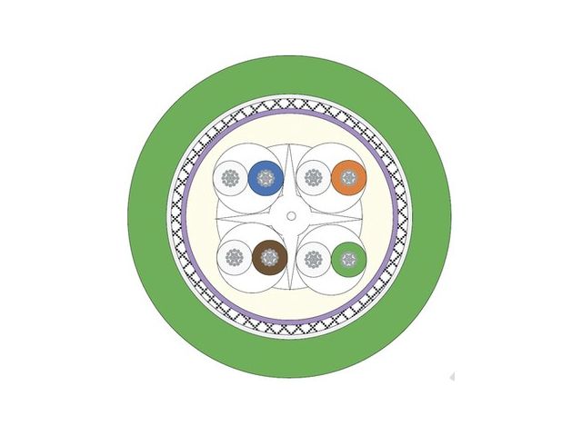 SF/UTP: braid of tinned copper wire and plastic laminated aluminum foil as overall screening