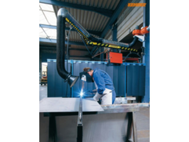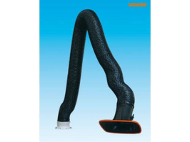 KEMPER exhaust arms are extremely suitable for extracting welding smoke, gases, damps, slight dusts and solvents. The exhaust arm consists of an interior parallelogram which is spring supported, a fibre glass hose with a PVC coating and an internal steel wire spiral.