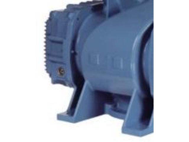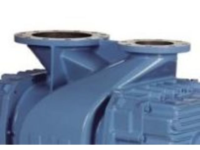 For pre-inlet cooling the housing is equipped with an additional third socket on the suction side. The lube oil supply is effected by splash oil lubrication. The conveying chamber is sealed by a sealing system. Driving shaft by double radial seal rings with grease barrier. Direction of flow vertically from top to bottom. The drive can be effected via a direct coupling with motor /spur gear or optionally via narrow V-belt.