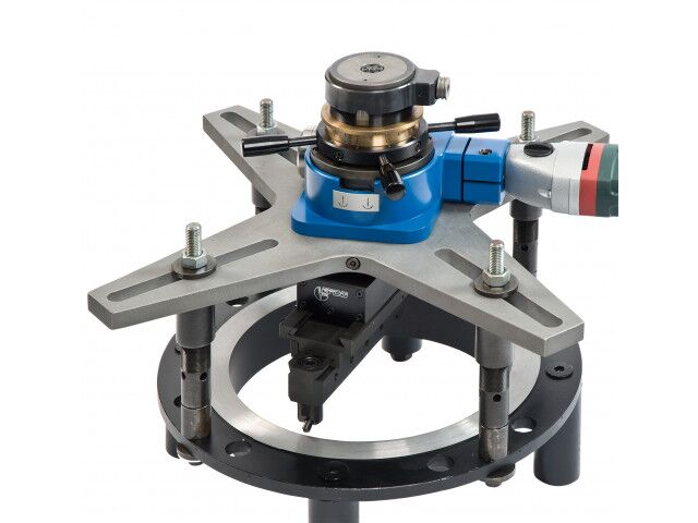 The machines feature an integrated adjustment system for precise alignment to the machining surface. The facing head is equipped with two automatic feeds: 0.1 mm/rev for fine machining and 1 mm/rev for turning spiral grooves or achieving a surface roughness of Rz 160. All machines are available with either electric or pneumatic drive.