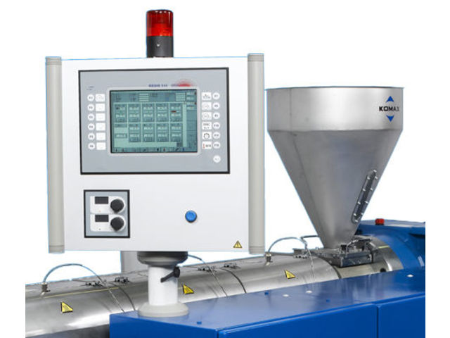 Supplementary tooling heat zoneMet pressure with double securityMelt temperature with security0'' or 12'' touch screen controlSliding feed hopper with secondary feed hopperLevel sensor with alarmLight grooved barre) in 3DLine speed synchronisationIT-controlled heating collarsMounted on adjustable wheels with rail