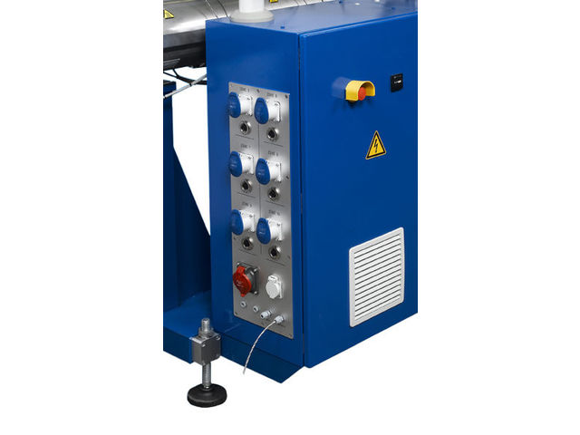 The large range of extruder diameters of the Elipse E allows a response to ail extrusion needs with regards to pipes, profiles, sheets and plates. The Elipse E extruders are designed for the transformation of all types of polymers, including: PVC, PE, PP, PA, ABS, PC, PS, PMMA, PET, TPE, TPU, PU, Fluoropolymers, technical polymers. The 25mm, 35mm and 45mm extruders have a plastification unit in Z-form with the electric control box underneath (see photo on the reverse), whereas the 60mm, 75mm and 90mm machines have all-form plastification unit and housed control box (see above).