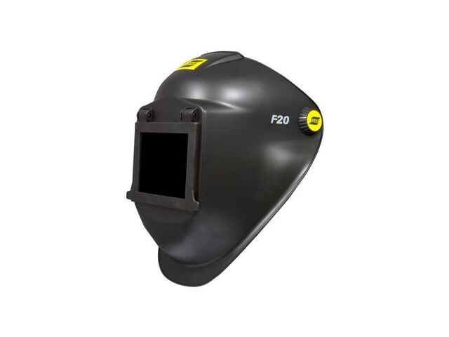 The ESAB F20 has a ‘flip up’ front in to which a welding glass is fitted. There is also a protective plastic lens that gives facial protection when the front is in the up position. Welding glass 10 DIN included in all helmets. CE-approved according to EN175.