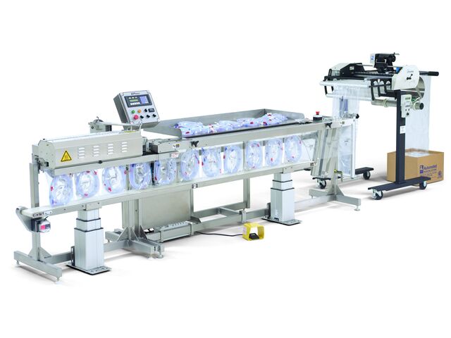 The FAS SPrint bagger can be integrated with a variety of automatic infeed systems and washdown compatible inline imprinters for semi- to fully-automatic packaging of portion or bulk food packs.