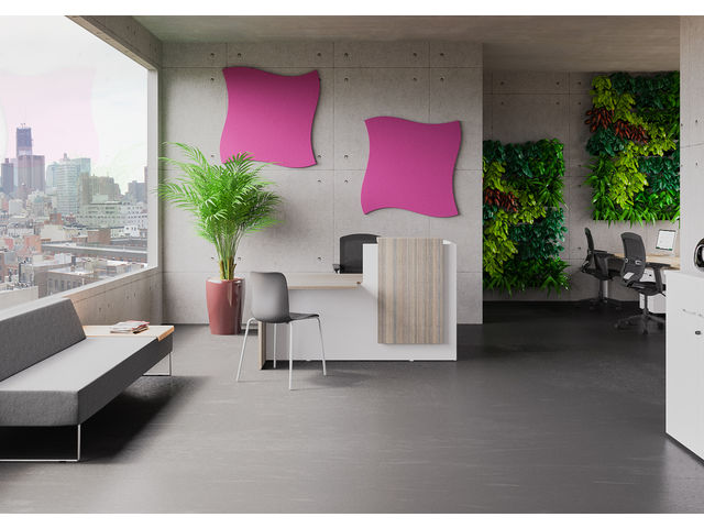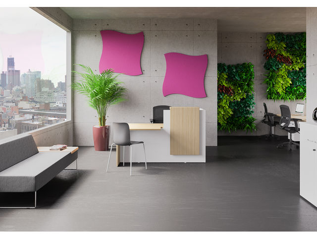 to reception shelf. Fifty-Fifty creates a friendly atmosphere for employees and visitors alike.