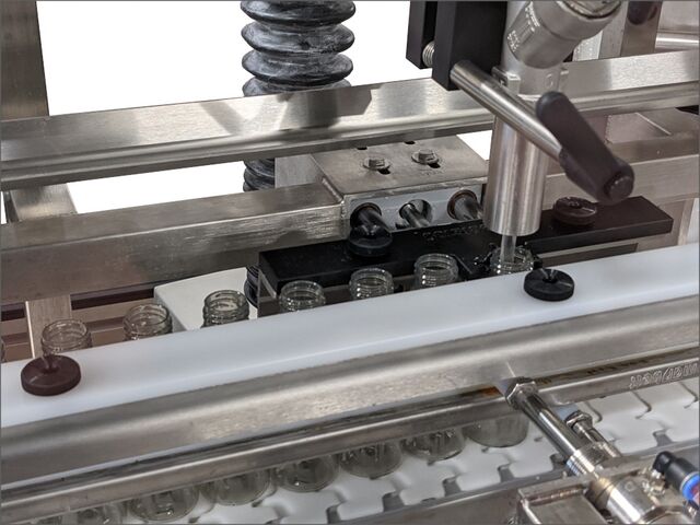 Positions bottle necks under fill heads