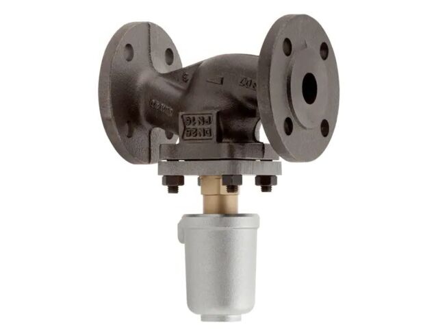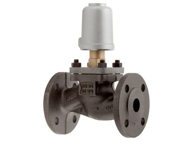The flanged valve with pneumatic actuator and body made of gray cast iron or spheroidal graphite iron in installation length and flange pattern according to DIN.