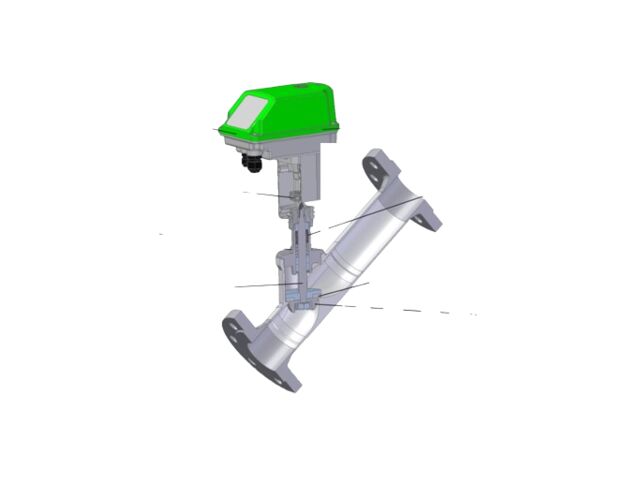 Compact flanged angle seat motor valve for on/off- and modulating operation for neutral and aggressive media.