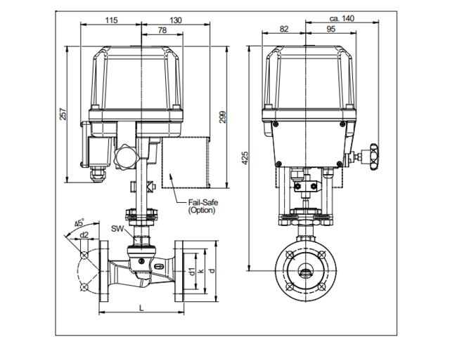 Highly accurate flanged motor valve for on/off and control operation with neutral and aggressive media. A version with fail-safe option is available.