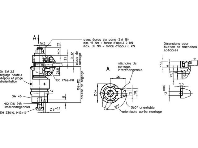 Brides flottantes avec bridage et blocage de l'appui combinés M 12