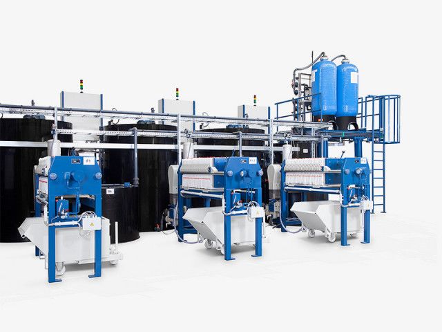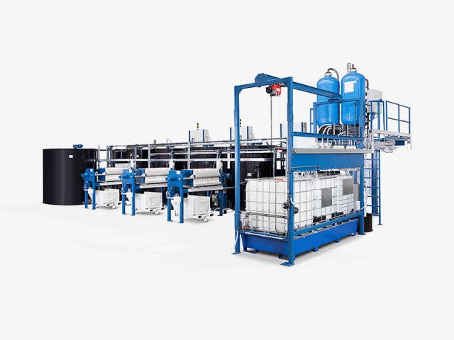 After vibratory finishing, the process water contains solids and pollutants such as metals, oils and greases. To prevent these from entering the sewage system during disposal, you can clean your process water - even acidic or alkaline water - in our flocculation plants. You can then discharge the clear water into the sewage system in accordance with legal regulations.