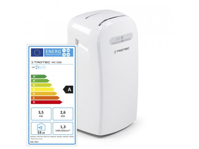 The PAC 3500 local air conditioner ensures instant comfort with powerful 3.5 kW cooling and automatic digital temperature control. Designed in a compact monobloc housing and rated energy class A, it's ideal for efficient use in workshops, offices, hotel rooms, server rooms, or exhibitions. Set your exact desired temperature – the integrated thermostat maintains it automatically. In addition to cooling, it also dehumidifies, helping prevent dampness, mould, and condensation. Warm air is vented easily outdoors via a 1.2 m hose, through windows, ceilings, or ducts. Combining strong performance, versatility, and ease of use, the PAC 3500 offers excellent value for money wherever a refreshing indoor climate is needed.