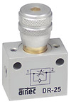 This valve is used for the speed control of a pneumatic cylinder. The adjusting knop controls the flow rate in