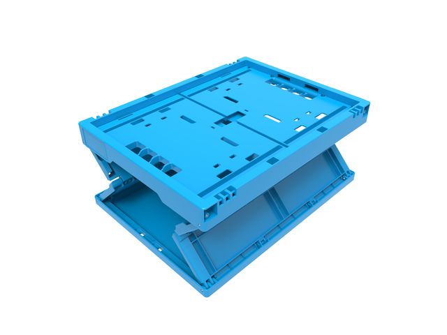 The amount of transported cardboard is 24 and the effective volume (approx.) is 22 liters. The bottom of this plastic container is smooth and closed.