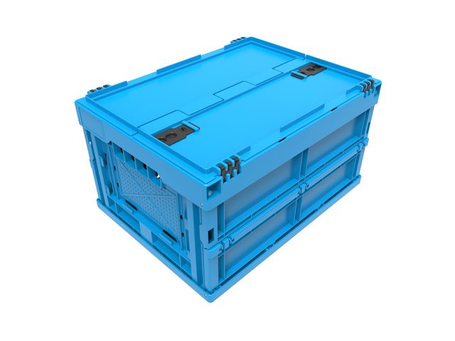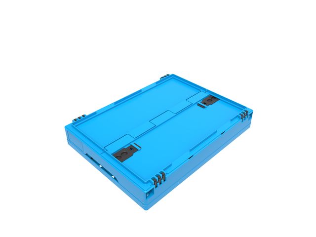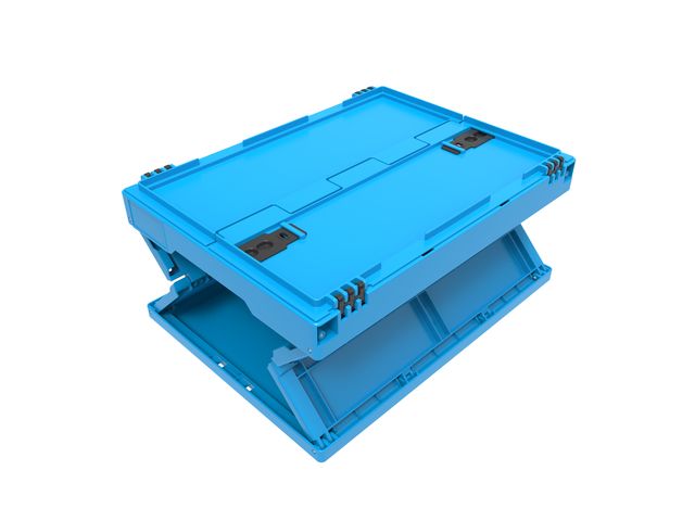 The blue Falter 4322 DL container is a foldable tub with attached lid on the long side. its external dimensions are 400 x 300 x 230 mm and internal dimensions are 370 x 270 x 215 mm.