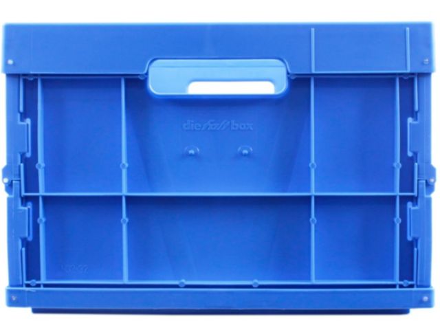 Used for storing and transporting of different products, the folding box Falter 4324 blue is made of polypropylene, with two handles and a closed, ribbed bottom.