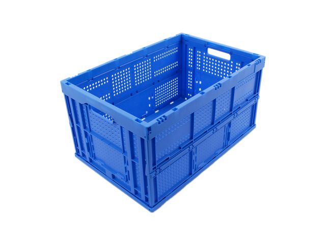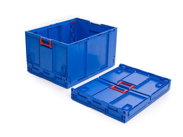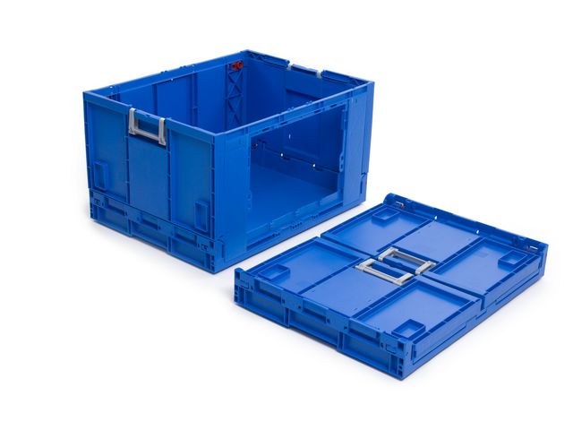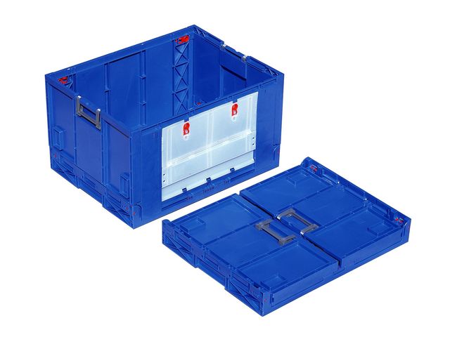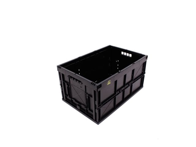 Designed in plastic (PP) approved for direct food contact, this foldable box, of internal dimensions 560 x 360 x 265 mm and external dimensions 600 x 400 x 280 mm, is ideal for transportation and storage of products and especially for electronic components