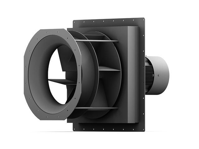 Up to 300,000 m³/h (5,000 m³/min) and 3,300 Pa. With direct or belt drive - frequency converter operation also possible. Impellers with blades bent backwards and made of steel or stainless steel. Fans of this type series are always configured specific to the project.