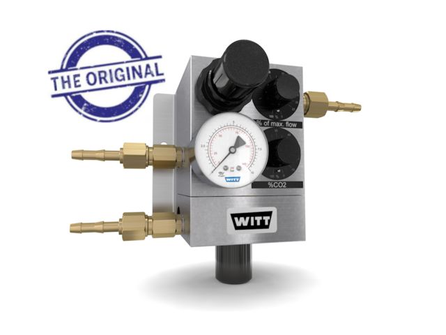 Stationary gas mixing system specifically for the generation of synthetic medicinal air (according to EN ISO 7396-1). Medical device class IIb, CE marked according to directive 93/42/EEC.