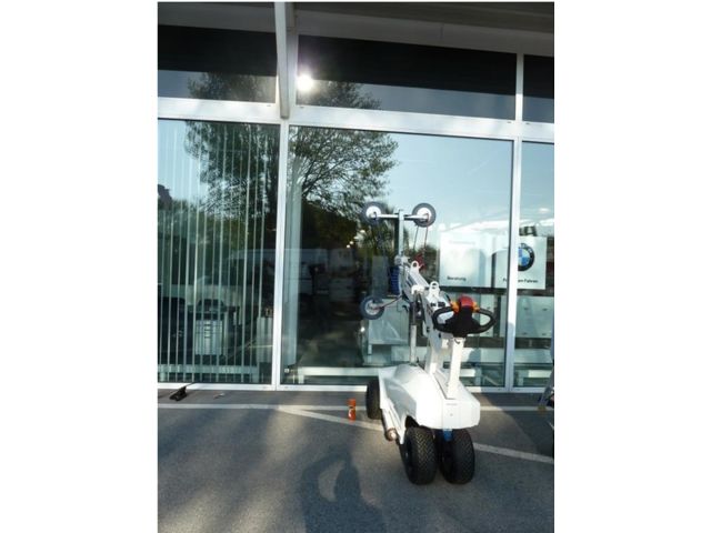 With these suction cups powered by batteries and its electric motor for translation and steering on battery, all movements are thus controlled by a single person.