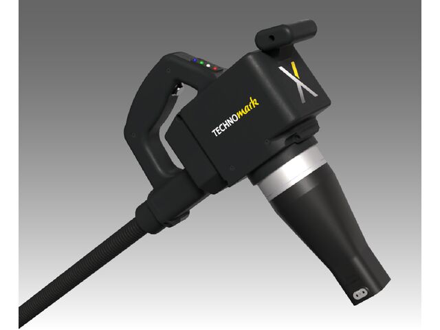 For easy operation, marking can be triggered directly on the head using a button located beneath the main handle. The head includes two handles for optimal grip and high‑quality marking. Live status indicators (marking in progress, air supply OK) also allow the machine to be used without needing the controller at arm’s reach.